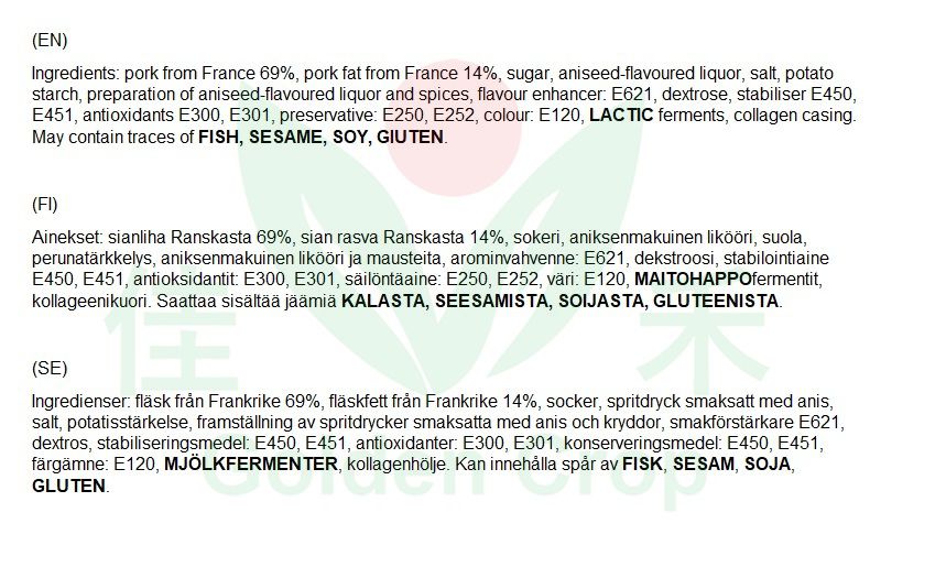 [20219] Sausage with Mei Kuei Lu Chiew 500g | 东方厨房 玫瑰露腊肠 500g