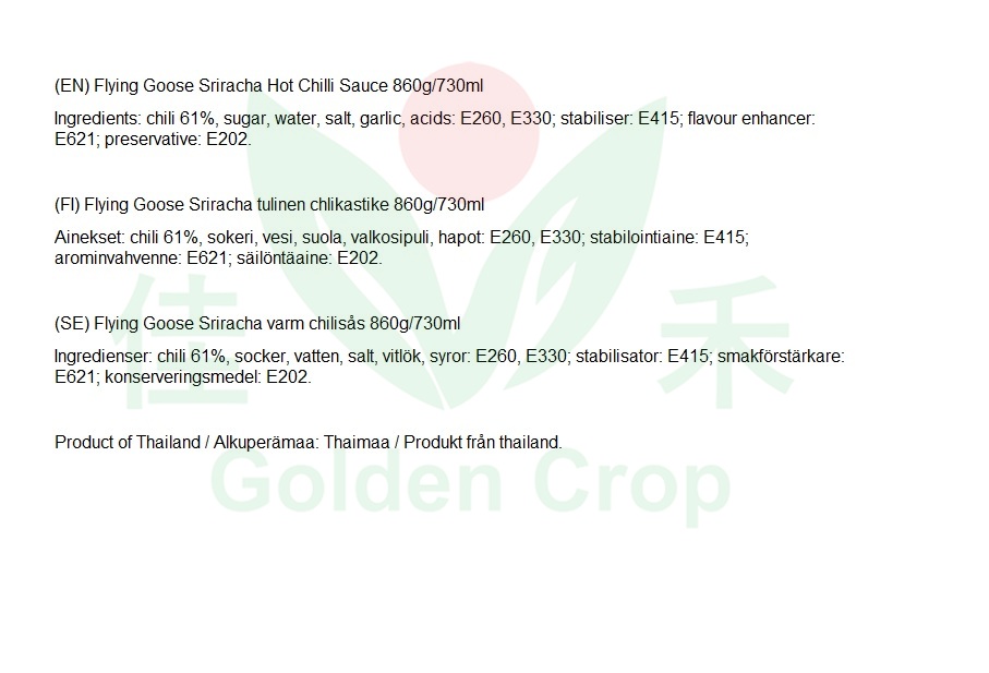 [40259] Flying Goose Sriracha Hot Chili Sauce 730ml | 飞鹅牌 是拉差 香甜辣椒酱 730ml