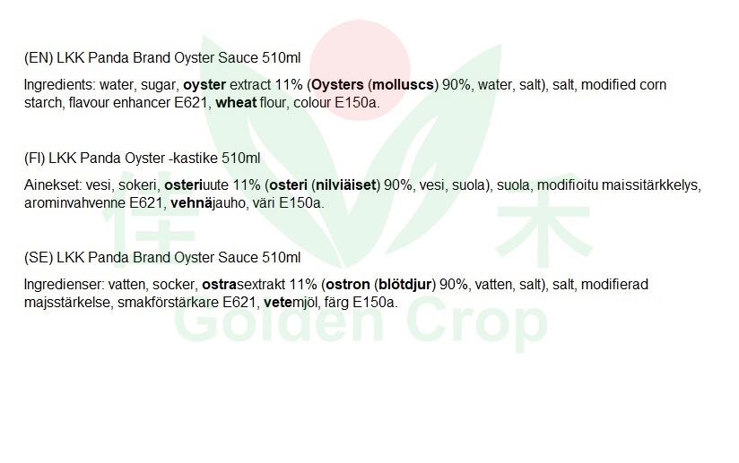 LKK Panda Oyster Sauce 510g | 李锦记 熊猫 鲜味蚝油 510g