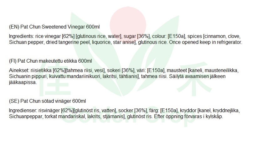 [40456] Pat Chun Sweetened Vinegar 600ml | 八珍甜醋 600ml